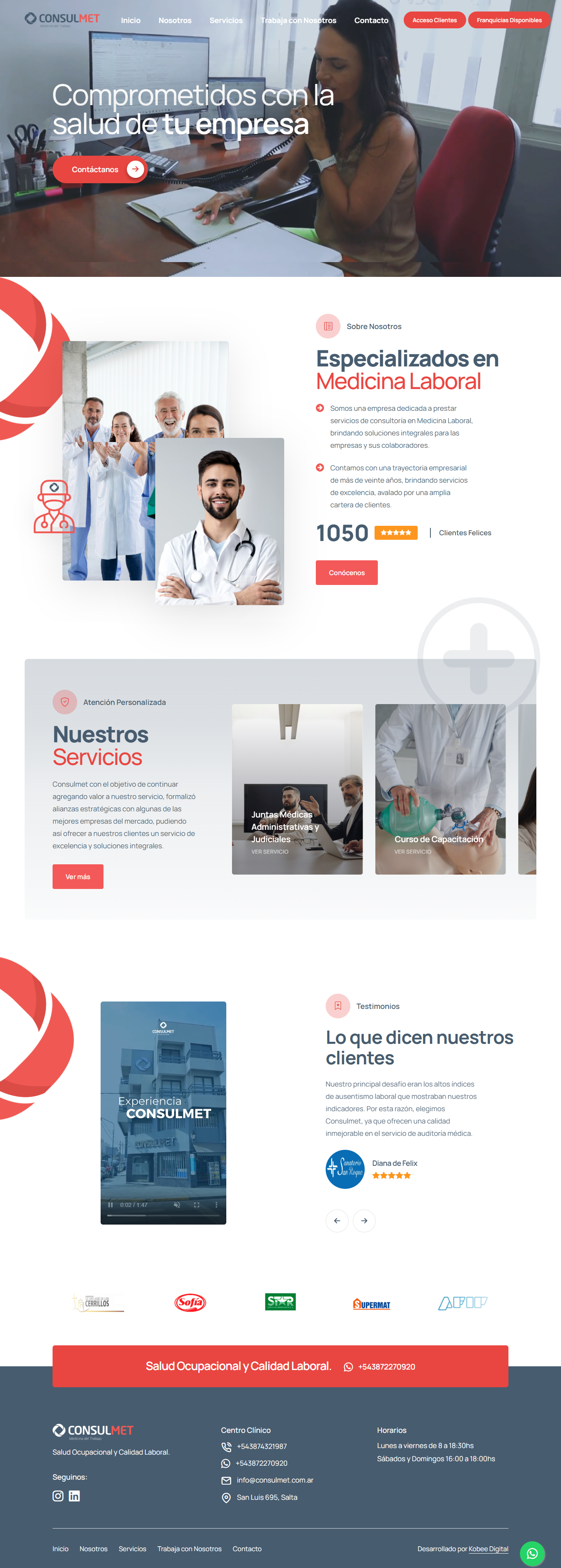 Requerimientos del proyectoEl sitio anterior de Consulmet presentaba varias limitaciones que afectaban tanto la imagen de la empresa como la experiencia de los usuarios. Su diseño no reflejaba la identidad profesional de la marca, la navegación era poco intuitiva y la información clave sobre servicios y sedes estaba dispersa o difícil de encontrar. Además, el sitio no estaba optimizado para dispositivos móviles ni preparado para estrategias de posicionamiento SEO.