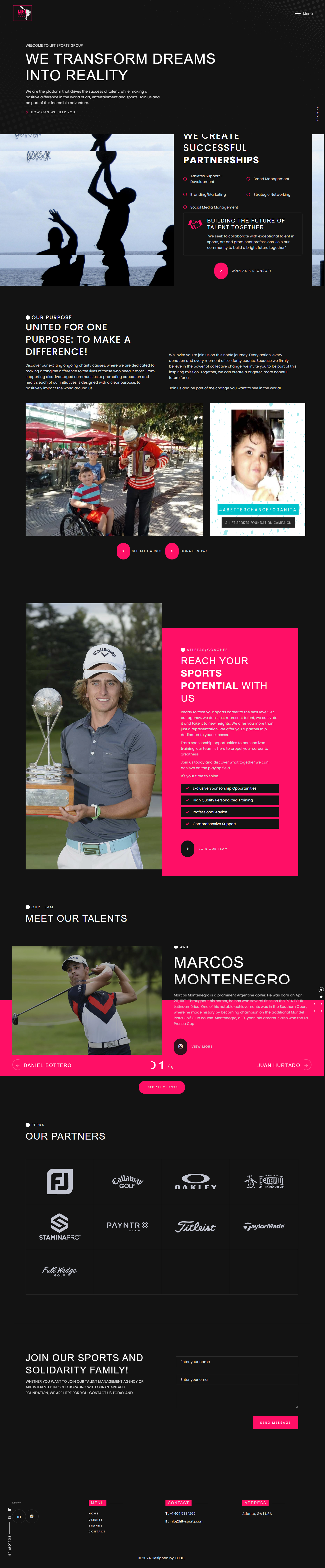 Requerimientos del proyectoEl desarrollo del sitio web Lift Sports fue una combinación de diseño elegante, funcionalidad avanzada y una experiencia de usuario optimizada para reflejar la profesionalidad de la marca. El objetivo principal fue crear una plataforma moderna y visualmente atractiva que pudiera mostrar la oferta de servicios de Lift Sports de manera clara y eficiente.