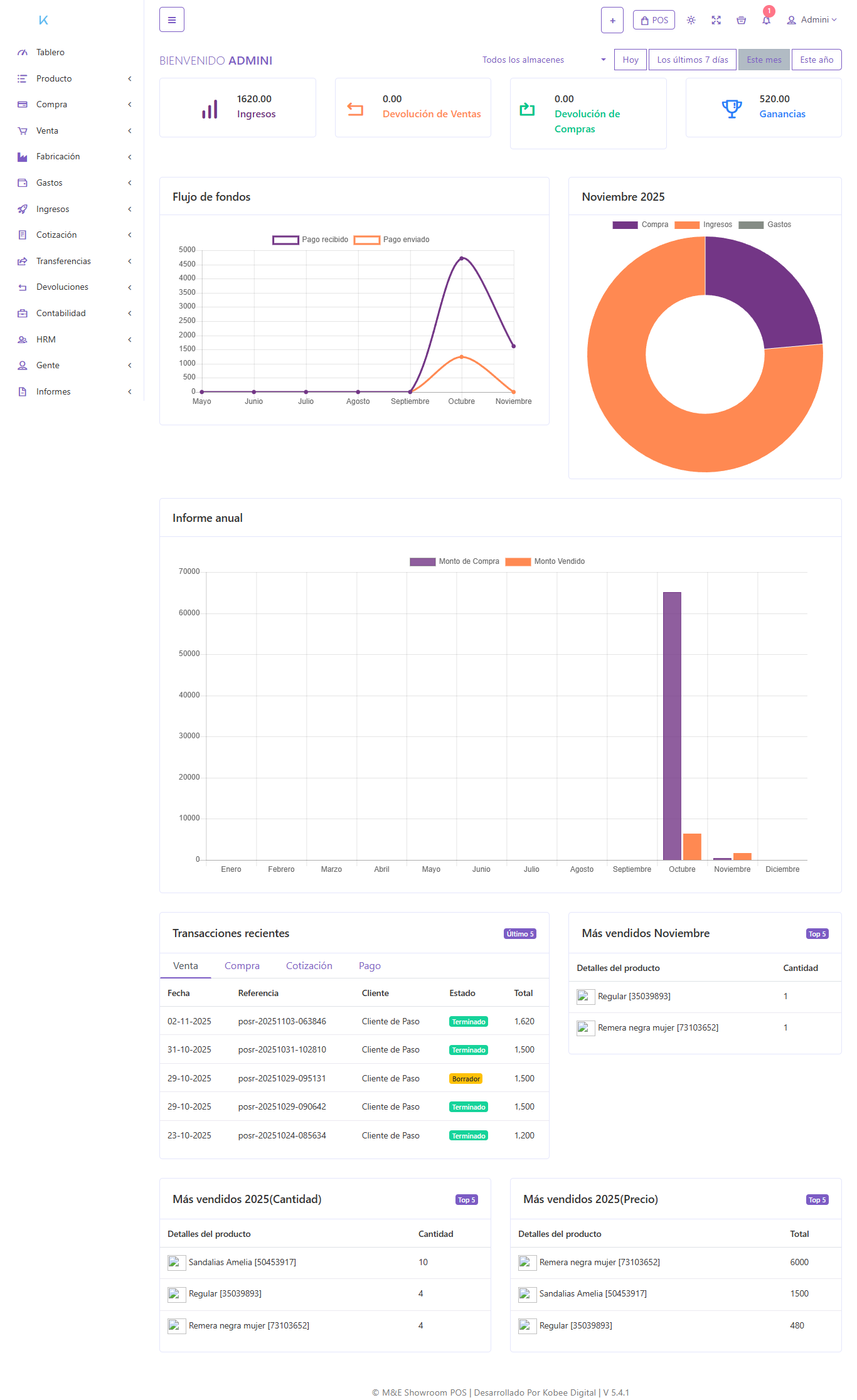 Se desarrolló un sistema web POS completo, escalable y accesible desde cualquier dispositivo, que permite registrar ventas en tiempo real, administrar productos, precios y stock, y realizar cierres de caja automáticos. La plataforma incluye módulos para gestión de usuarios/permisos, control de inventario y reportes de estadísticas dinámicas. Construido sobre una arquitectura moderna y segura, el sistema ofrece fluidez y facilidad de uso, con un panel de administración que permite el control en línea y trazabilidad de las operaciones en todas las sucursales